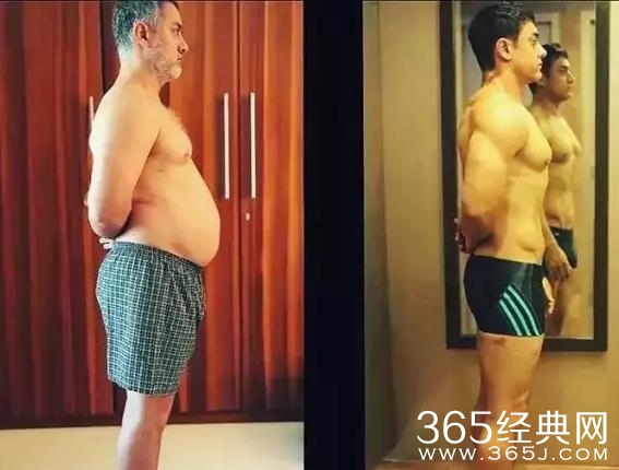 为拍摄《摔跤吧,爸爸!》,51岁的他,一人饰演男主角19岁、29岁、55岁三个人生段。首先拍完19岁戏份后疯狂增肥,一个月时间从138斤的美男子摇身一变,成了体重194斤、体脂含量37%的55岁胖大爷,拍完老年的戏份后,阿米尔·汗花了整整5个月的时间疯狂减肥,重回体重144斤、体脂9.8%的肌肉男神,这才回去拍完29岁的戏份。