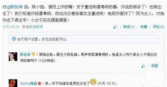 这个女人真是既有实力又有魄力,确实让人印象深刻。另外大家会认识她还因为娱乐圈两件轰轰烈烈的事。一件就是当年董洁和潘粤明的离婚事件,陈祉希和潘粤明是死党,当初为了董洁和王大治的事,她为好友微博怒骂董洁,传得沸沸扬扬,她也因此一骂成名。