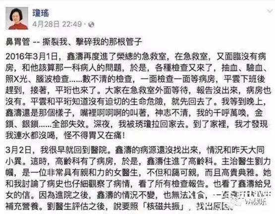 5月9号,在琼瑶和平鑫涛结婚39周年之际,琼瑶关闭脸书,并表示“这次是 珍重再见,后会无期 了”。也暂时中止了自平鑫涛老年痴呆以来,和三个继子女因为“插不插鼻胃管”这个问题,而在全世界华人面前上演的“口诛笔伐”。