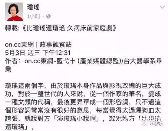 正当网友议论的时候,脸书却把这篇文章删 了,为此琼瑶十分生气,并愤怒的表示,“以后不用脸书了,太可恶太伤心了!”