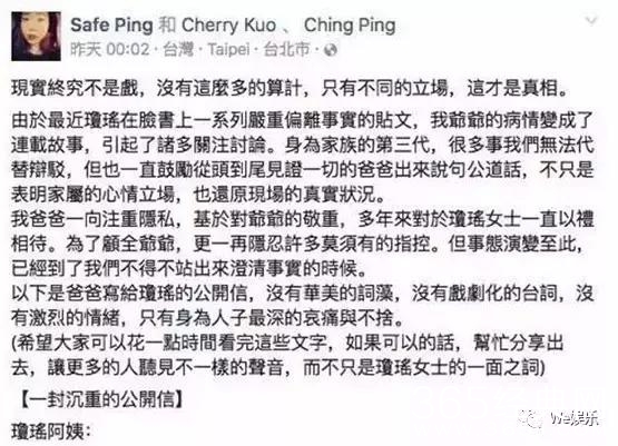 现在看来,当初琼瑶公开遗言是有所指的,弦外之音是对三个继子女喊话。