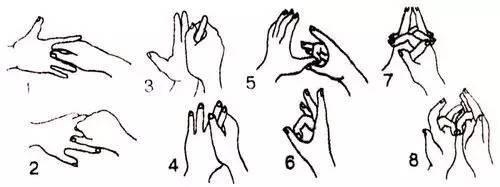 挤压手指:左手自然伸平,右手的大拇指顺手掌方向放在左手手指上,其他手指与大拇指轻轻挤压左手中指。