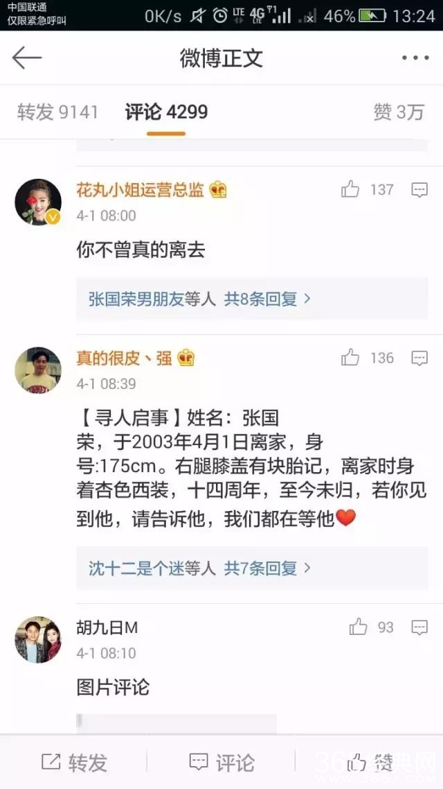 每每看到他的粉丝在纪念张国荣的微博底下评论,就会觉得好心酸。试想,一个自己倾尽一生去爱的人,却就这么走了,那该是会有多悲伤呢?