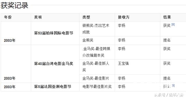 2003年,李杨完成电影《盲井》,该片获第53届柏林国际电影节最佳艺术贡献银熊奖,第5届法国杜维尔亚洲电影节最佳影片、导演、男演员、影评人、最受观众欢迎等五项大奖,第2届美国纽约崔贝卡电影节最佳故事片奖、比利时国际电影节最佳影片奖和挪威贝尔根国际电影节评审团奖等三十余个国际奖项。