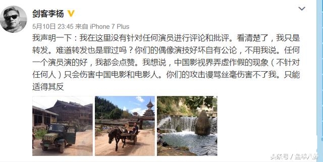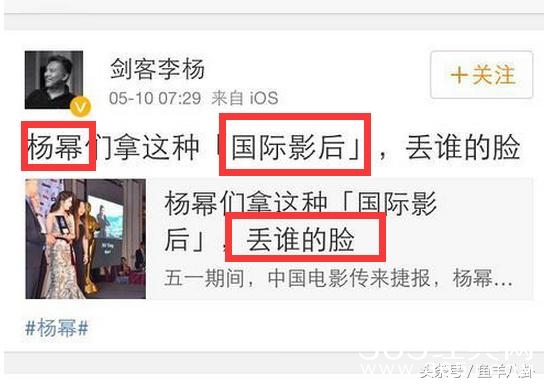 导演李杨公开在微博上转发文章,说杨幂吹嘘国际影后很丢脸。粉丝疯狂攻击他,他回应说,骂我也要说。
