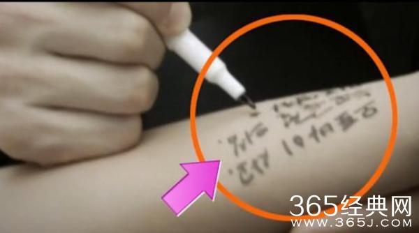 当徐大荣回想起自己手机被偷走的过程时,镜头给到了柳时镇正在给小偷的手上写字,此时他写的字是这样的。