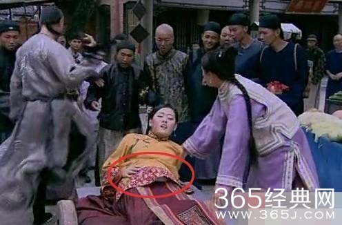 在第20集中,假朱三太子的老婆快要生了,被八阿哥和晴川扶到车上的时候,垫在肚子上的道具坐垫露馅了。