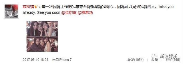 之前陈意涵、薛凯琪和杨子珊一起拍了个电影,在戏中是好闺蜜,好像杨子珊之后和另外两位的联系并不多的样子。