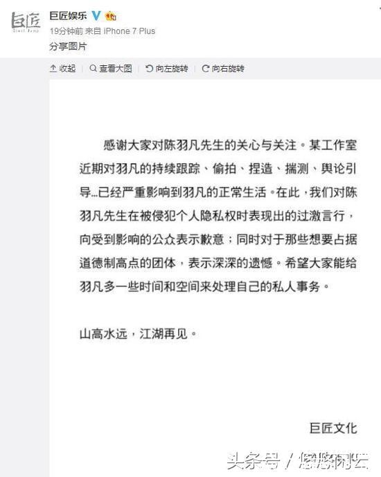 有人就为陈羽凡砸狗仔车窗叫好,甚至觉得被打死都不亏!之后俩人也互相道歉,原本事情就此结束也就罢了,谁知道后面竟然狗仔报警,还说和陈陈羽凡偶遇!这尼玛就尴尬了:你不去招惹陈羽凡,他能平白无故的知道哪辆是狗仔的车啊?于是也被网友觉得狗仔就是典型的恶人先告状啊!