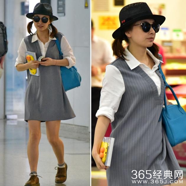 吴昕机场少女风造型