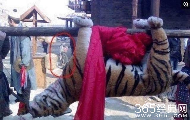 看看这老虎,也不晓得这布老虎有几人可以看出来,但是后边的自行车是谁都能看出来的了!