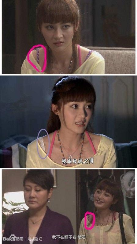 小可“离家出走”的时候,肩带是紫色的;到了海潮的家里,肩带变成了白色蕾丝的;回到家,小可的肩带又变成了紫色的。