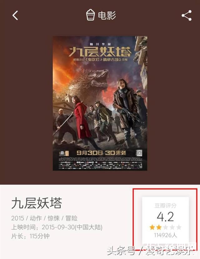 陆川还凭借豆瓣评分4.2的《九层妖塔》获得最佳导演奖