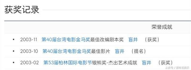 曾因电影《盲井》获得 第40届台湾电影金马奖最佳改编剧本奖、第40届台湾电影金马奖最佳改编剧本奖,提名第40届台湾电影金马奖最佳影片奖
