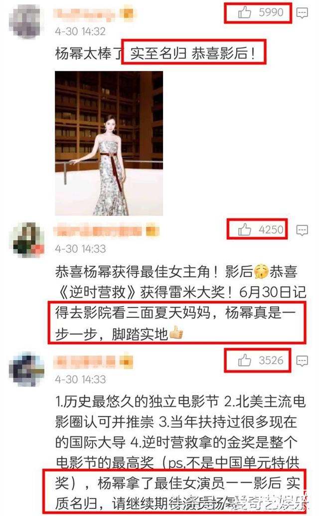 4月29日 杨幂获封休斯顿国际电影节影后,粉丝一片欢腾