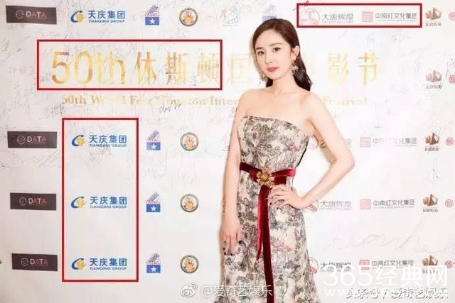 从杨幂的这张现场图来看,背景板上连电影节的名字都是中文的, 赞助商也都是中国的企业