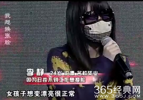 事情经过是这样的,求整容的女孩子家庭普通毕业与名校,本以为好好读书就能找个好工作,无奈最后找到的工作很普通,一个月一两千块,认为自己找不到好工作的原因是长得不好看,上节目的时候都戴着口罩帽子墨镜啥的,捂得严严实实的。