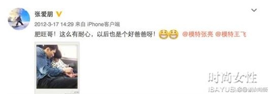 他的微博也时常与模特张亮互动,还有与天天一起玩耍的照片。