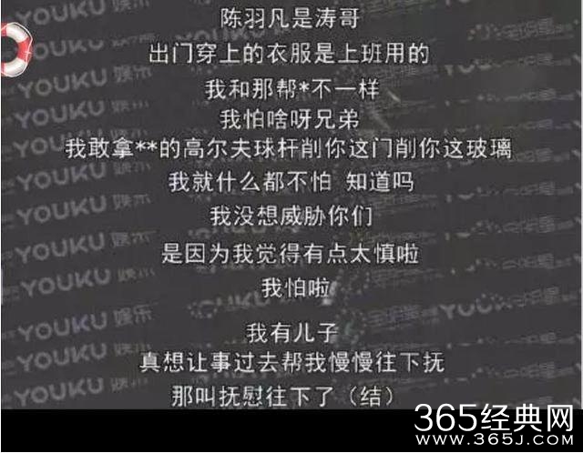 陈羽凡在回家的路上发了然全影星探跟在她后头的车,抑制许久的陈羽凡下来,二话不说拿了根高尔夫球杆就把全影星探的车窗玻璃给打烂了。