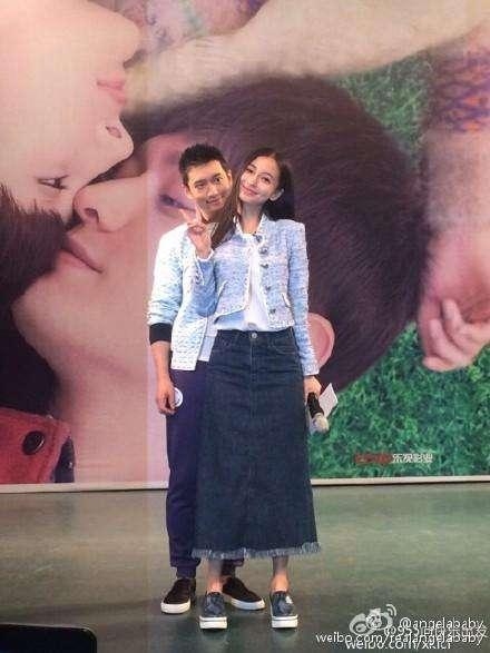 再来看看Angelababy没有穿高跟鞋时候的两人合照吧↓