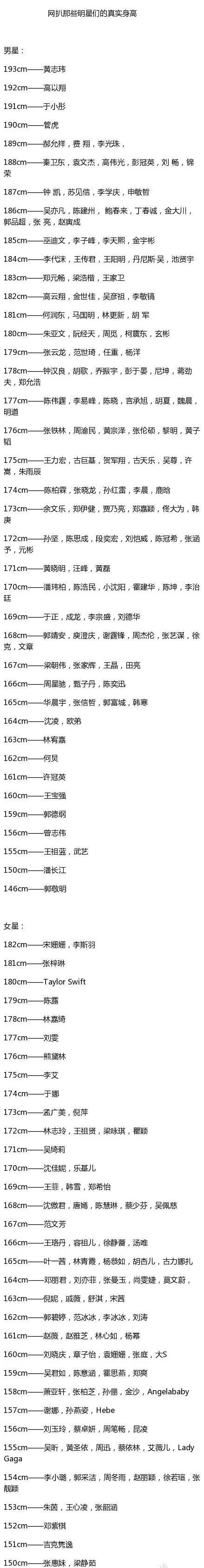 下面还有众多明星真实身高大家随便查阅↓