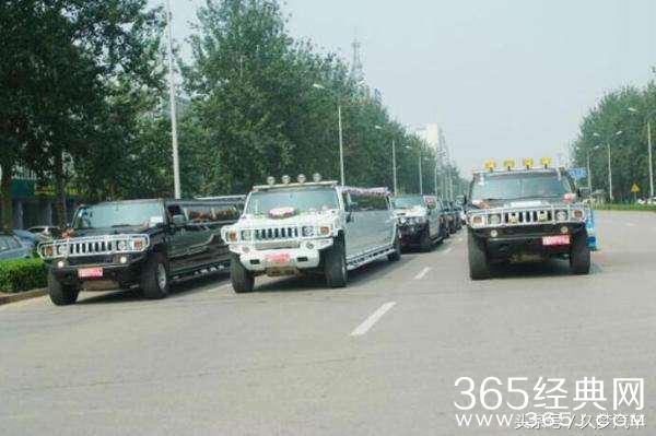 但是你以为这样就很霸气了?看这张图,加长款悍马越野车当婚车,中间的那辆价值高达300多万。相比兰博基尼婚礼车队,价值上下降了,但是人家胜在霸气!