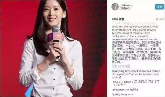 2017年3月24日,“物爱相连-京东公益募捐平台”上线,章泽天作为爱心大使出席活动,并在ins上宣传“你来下单,我们配送,全程透明,高效反馈”,希望网友们多提意见。