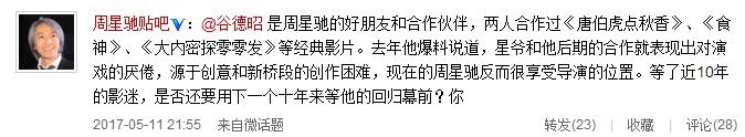 这是周星驰的好友谷德昭透露出来的信息。谷德昭是周星驰的好朋友也是合作伙伴,两人合作过《唐伯虎点秋香》《食神》等多部经典影片。他的话可信度比较高。