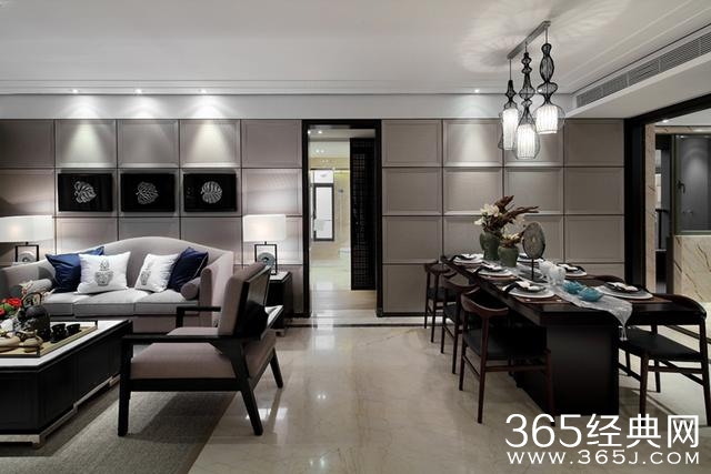 融入了丰富的中国古典元素,传统家具,手绘屏风、瓷器、古玩等在不经意间打造了素雅古朴的至美空间,传达着传统文化的深远意蕴,表达人们对宁静致远的生活境界的追求。