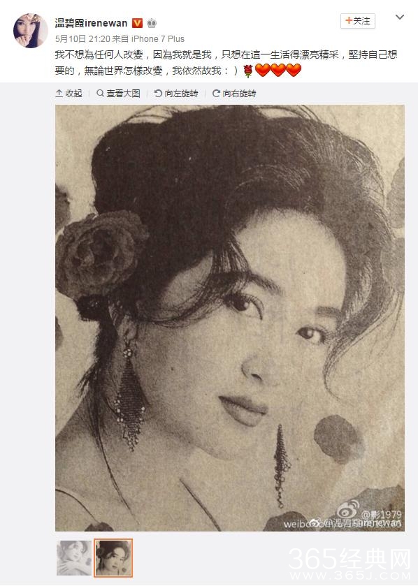 昨日,已经51岁的温碧霞在微博发出这句话:“我不想为任何人改变,因为我就是我,只想在这一生活得漂亮精彩,坚持自己想要的,无论世界怎样改变,我依然故我:)”小编对于这句话是这样理解的:“我依然故我”说出了自己除了不忘初心,保持着原来的心态之外,也臭美了一番,为什么呢,因为她从结婚到现在十几年过去,现在的身材和颜值还是一如当年。