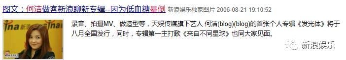 几个月之后,何洁做客新浪聊新专辑时,被问到晕倒这个话题。