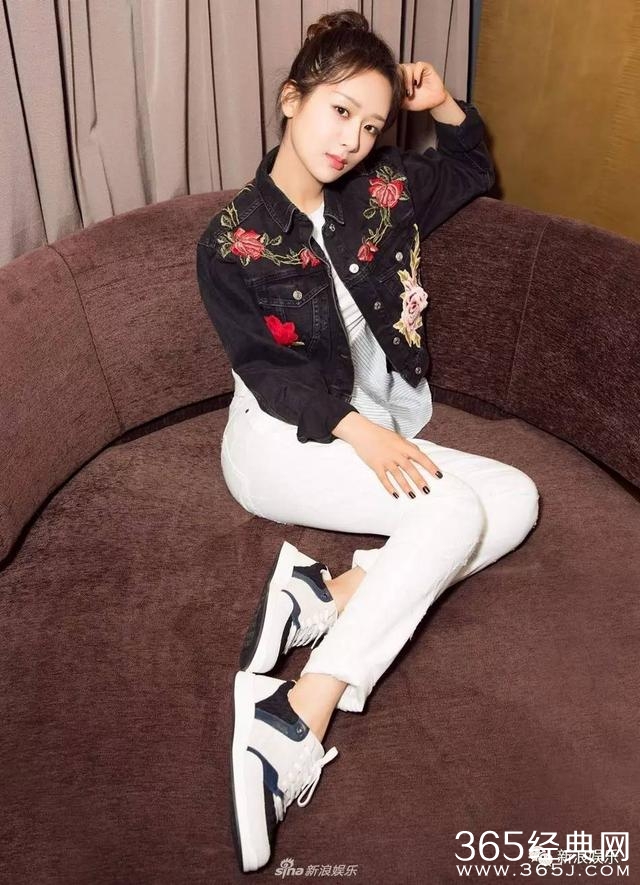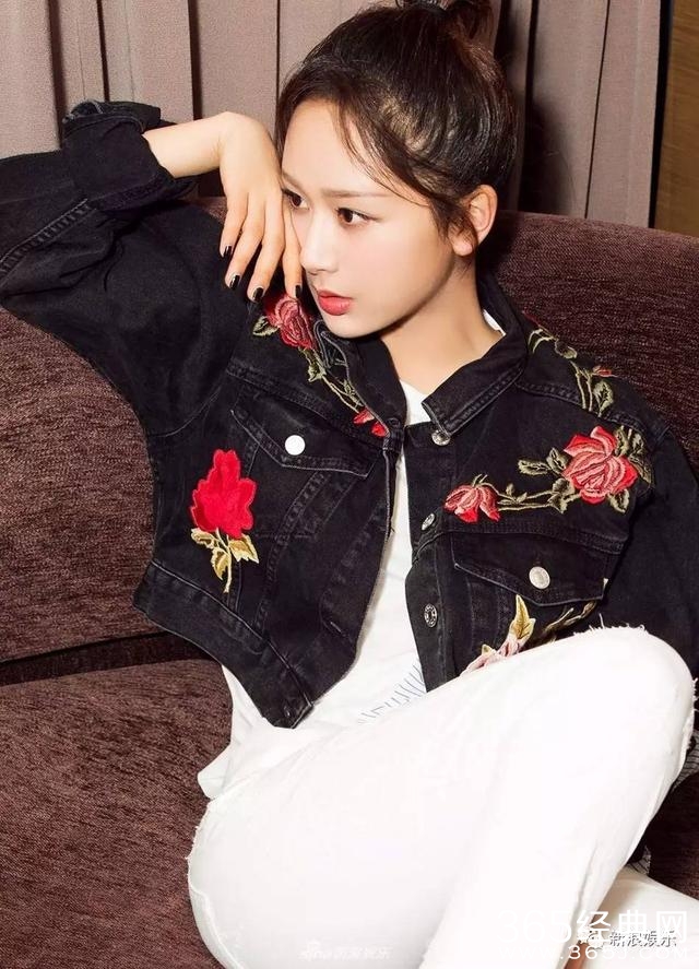 杨紫,黑色系刺绣牛仔外套搭配白色T恤,简单干净又不失设计感。整体造型俏皮炫酷,清新养眼