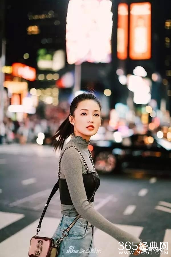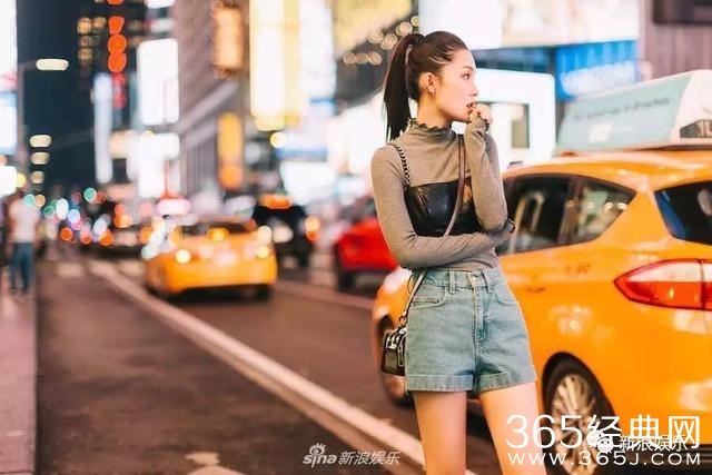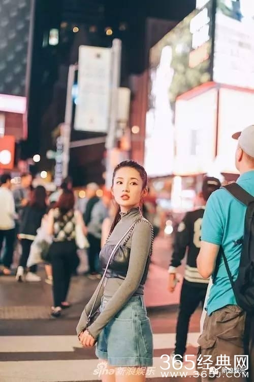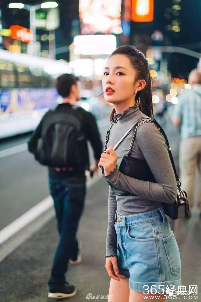 李沁,简约高领衫外搭皮质吊带和高腰牛仔热裤,整身look俏皮活泼,夜色下更多了几分复古味道