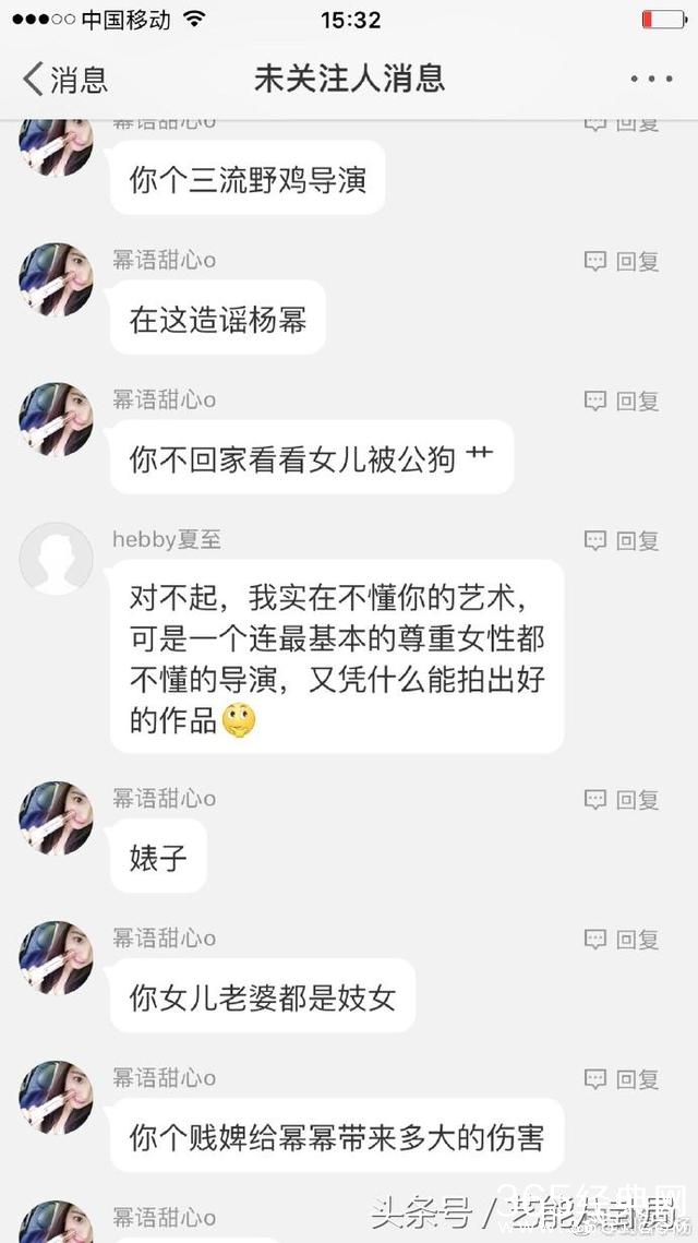 骂李杨是“野鸡导演”,说人家不懂艺术,是“不要脸的无名导演”,应该“滚出电影圈”……