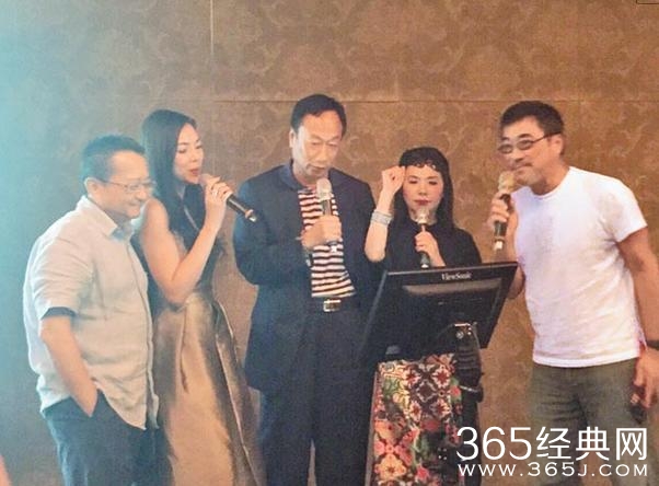 这是张清芳的49岁生日的派对,能让李宗盛大哥给面子在KTV里唱《山丘》,这面子不知道有多大啊。上图,右边起,李宗盛,张清芳,富士康的老板郭台铭,郭台铭的太太曾馨莹,最左边是张清芳的老公宋学仁