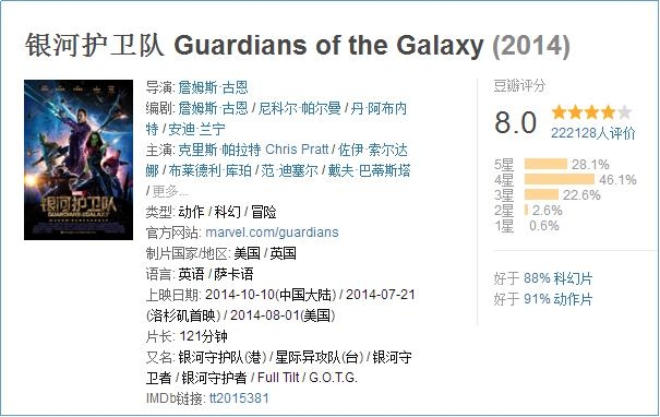 目前豆瓣评分8.0,这样的漫威出品,还是值得一看的。