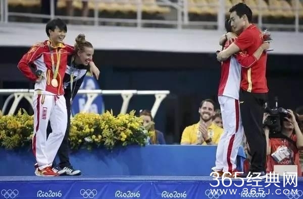 这张金铜牌得主施廷懋和铜牌得主卡诺托互相搭着肩,看着秦凯何姿相拥的照片成为了奥运会的摄影经典,爱情、友情、奥林匹克精神全都浓缩进去了。