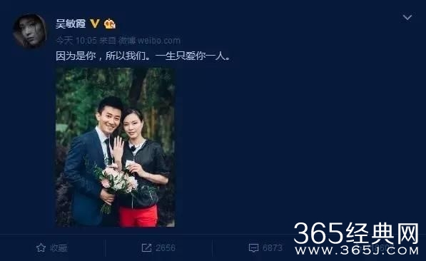 随后吴敏霞在微博上晒出钻戒,说道:因为是你,所以我们。一生只爱你一人。