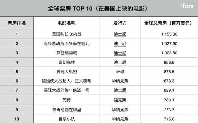 根据好奇心日报整理,2016 年,中国内地给迪士尼总票房的贡献率已经超过了 1/10(并不是每部迪士尼电影都会在内地上映)。