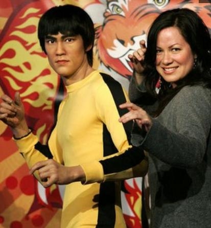 李小龙离世时,李香凝只有四岁,所以对于父亲的记忆只是童年的一些琐碎回忆,如今的李香凝与父亲李小龙的蜡像合影