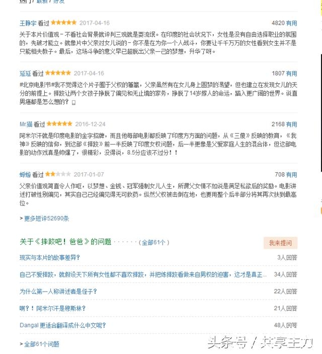 小编今天再次向大家介绍摔跤吧!爸爸,这部电影我有看了两遍真是欲罢不能啊。《摔跤吧!爸爸》最近很火爆,不只票房火爆,10日单日票房反超好莱坞大片《银河护卫队2》,剧情火爆,有看着片子想跟着音乐起舞的,也有为紧张的摔跤比赛掐青手腕的。就是这么一个看了开头也能想到结尾的故事,却让几乎每一个看了的观众都自动推荐好友。还没看的小伙伴还等什么带上你的家人一起舞蹈起来,感动起来吧。
