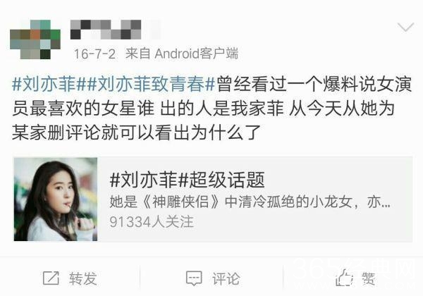 要说最能体现两人联系的,即是上一年曾经有网友到刘亦菲微博谈论区留言说杨幂欠好,刘亦菲都给删了