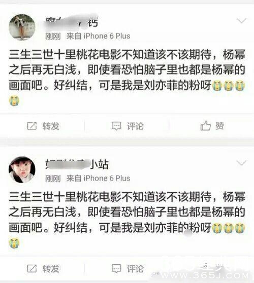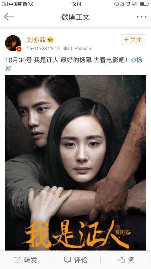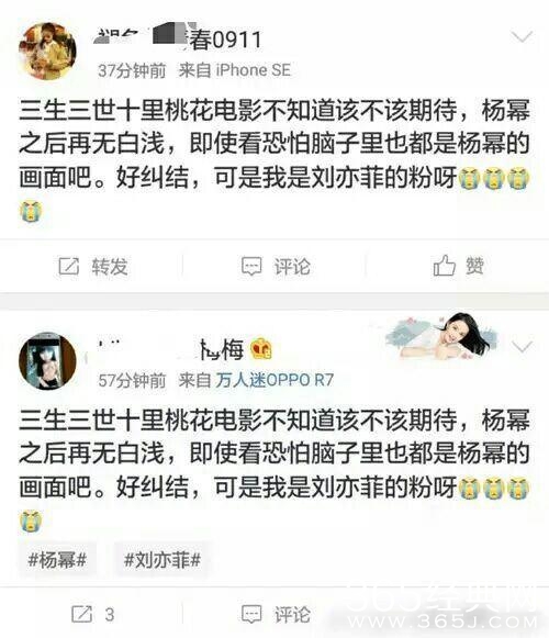 刘亦菲微博也没闲着,还为杨幂女士打广告。