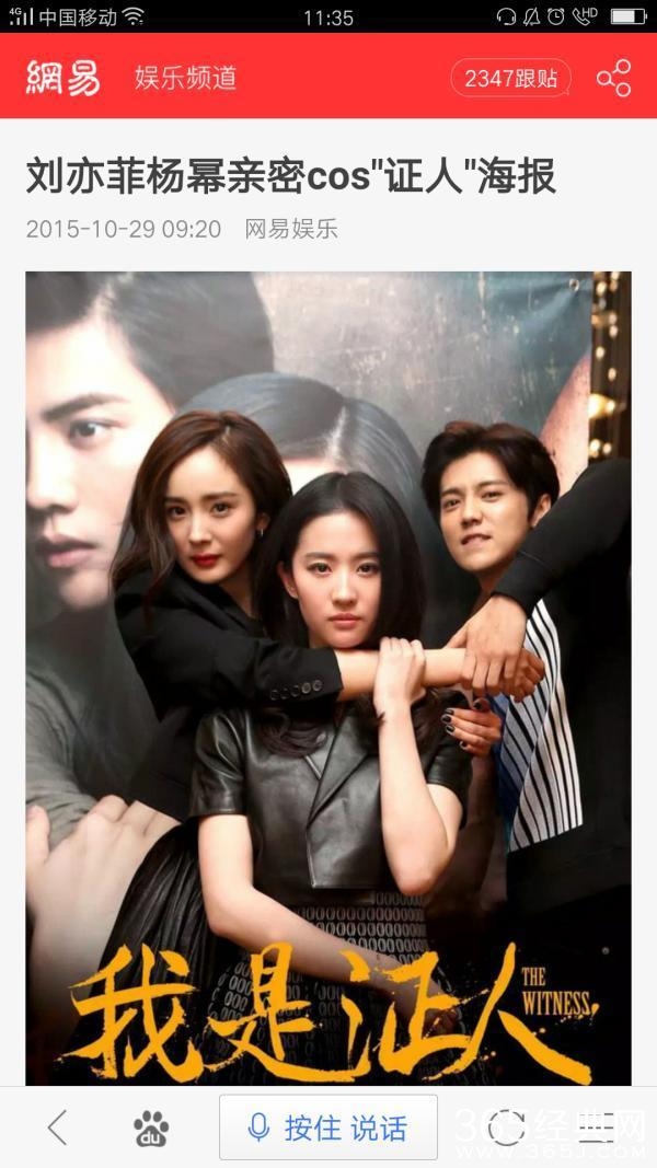 杨幂的影片《我是证人》影片首映礼,刘亦菲曾作为闺蜜的身份去为她站台,一同拍了海报。