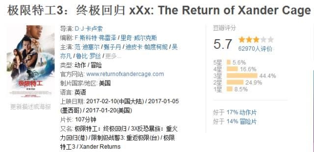 那么《极限特工3》这部只算北美B+级的电影,