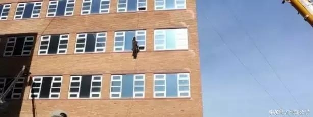 这场戏要吊上有几层楼高,她手里还抱着一个孩子,重量都压在两条绳子上,要顺着绳子滑下来。