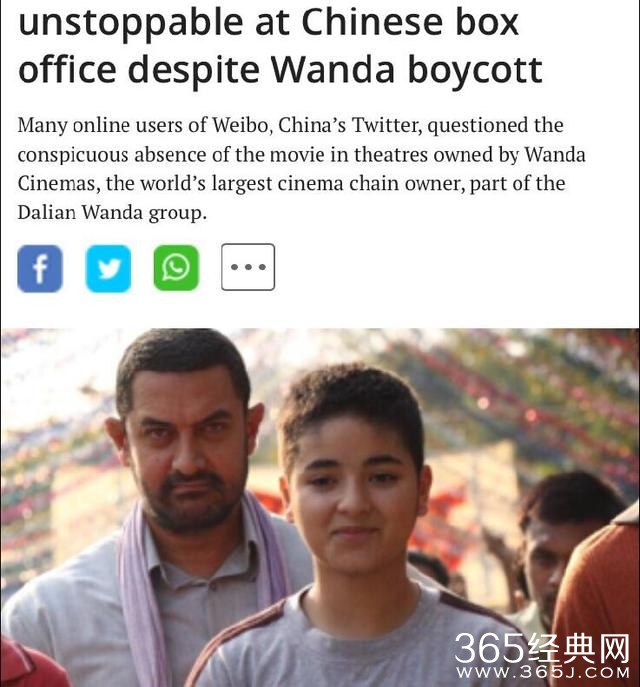 印度媒体也坐不住了,发了篇稿子,报道了摔跤吧,爸爸,在中国遭遇万达冷处理。