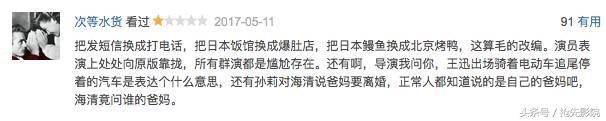 排在前面的评论基本一水都在说“完全照搬了日版电影”。