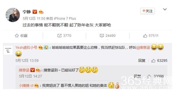 这个视频流出后,本来只是网友在私下热议,纷纷叫嚷委屈了许晴,冤枉了晴姐。谁知,宁静竟然在微博上回应了,“过去的事,能不翻就不翻,陈年老灰大家都呛。”而怕不嫌事大,郑爽及陈意涵在微博“站队”力挺,把“撕逼”推向了高潮。