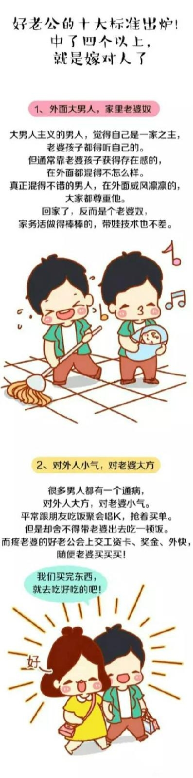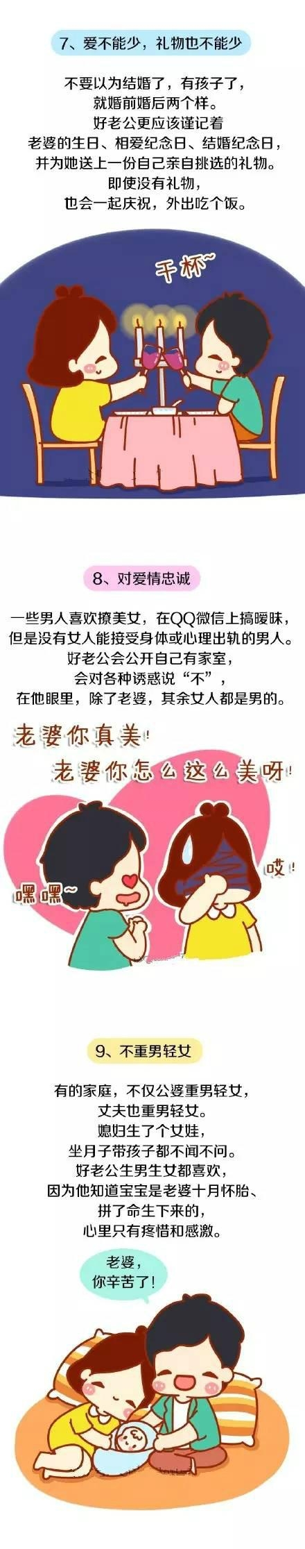 而身为好老公,他们都不约而同做到了这10条,因而这10个标准,也成了评判好老公的准则。